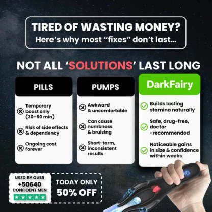 DarkFairy targets the root cause of performance decline—poor blood flow and nerve desensitization—using therapeutic wave pulses clinically shown to support erectile health.